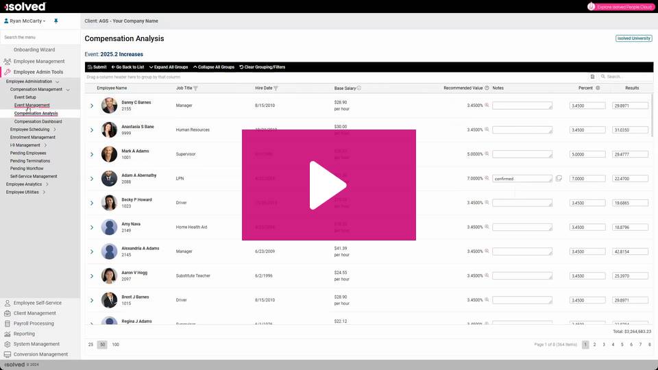 Manage events, assign tasks, automate reminders and enable changes to flow directly into isolved Payroll. The Compensation Dashboard even offers complete visibility into annual merit increases, salaries, bonuses and more across your organization.