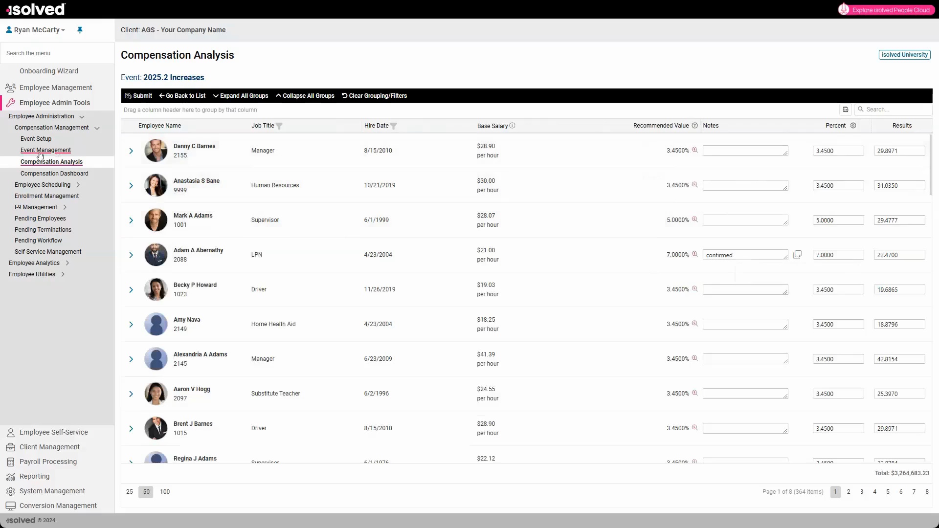 Manage events, assign tasks, automate reminders and enable changes to flow directly into isolved Payroll. The Compensation Dashboard even offers complete visibility into annual merit increases, salaries, bonuses and more across your organization.