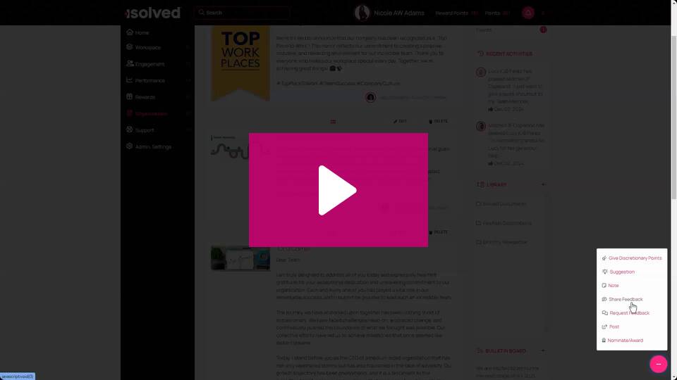 Initiate reward and recognition programs that allow team members to rack up points when they collaborate, share, and innovate. Posting walls and feedback surveys enable employee alignment across functions and locations.
