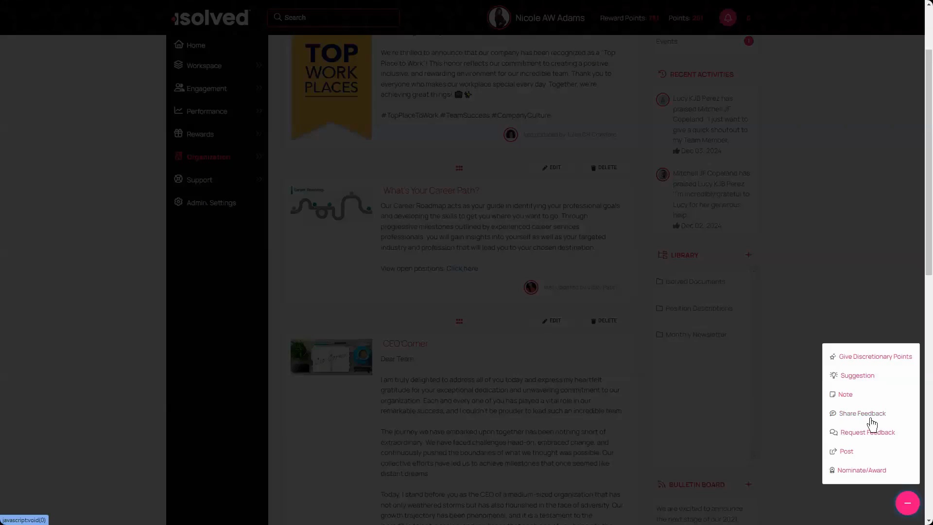 Initiate reward and recognition programs that allow team members to rack up points when they collaborate, share, and innovate. Posting walls and feedback surveys enable employee alignment across functions and locations.